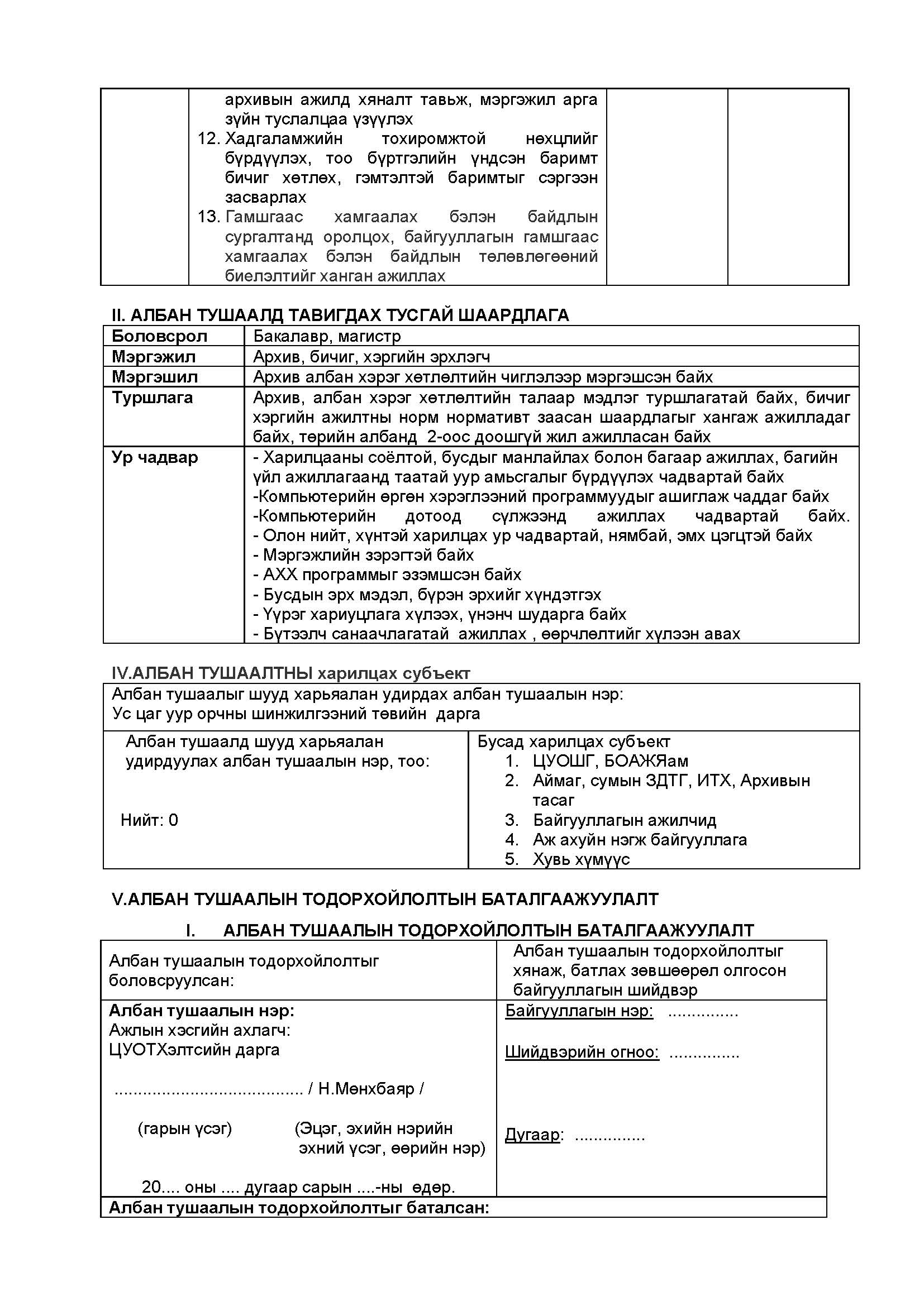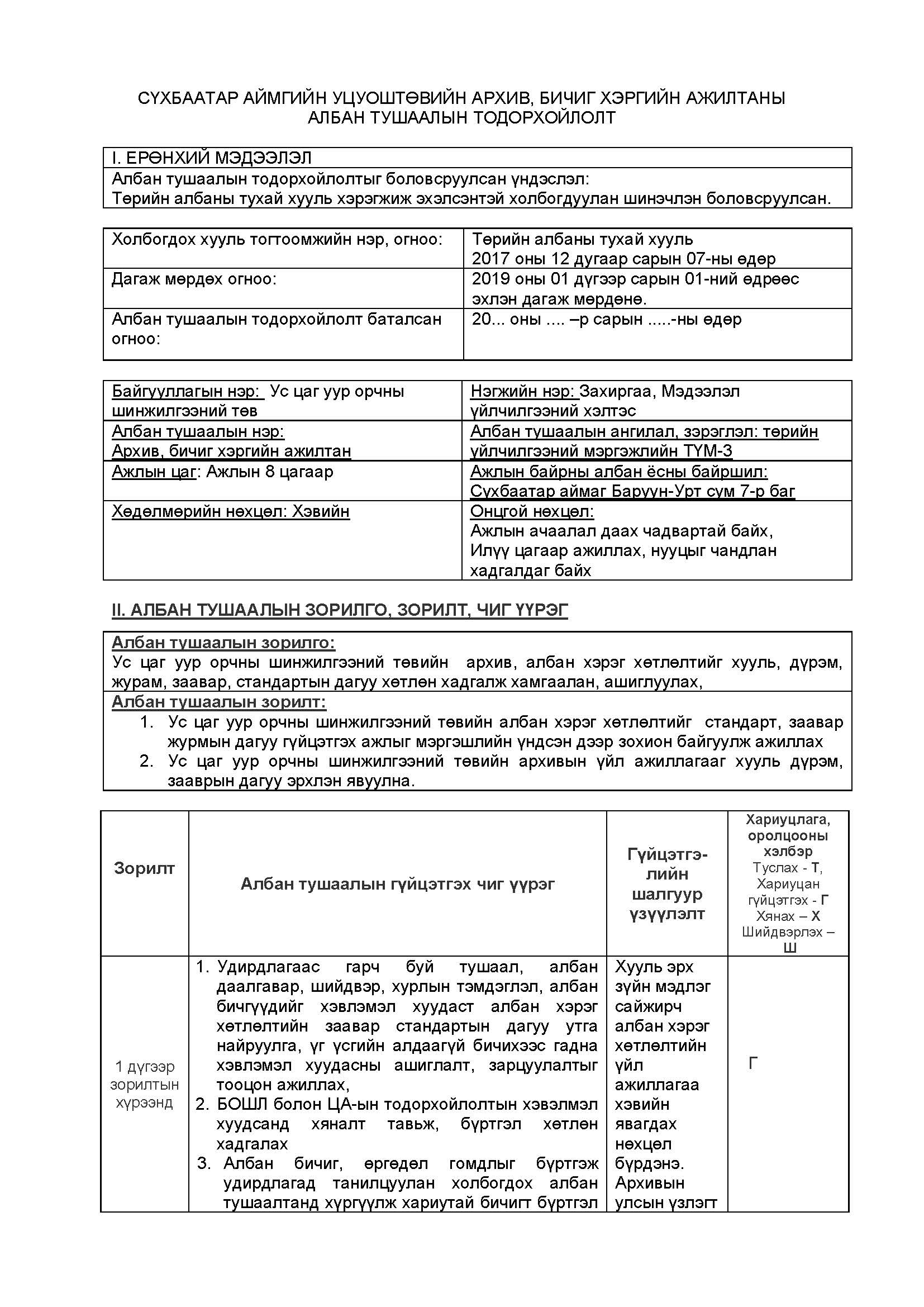 Албан тушаалын тодорхойлолт /Бичиг хэргийн ажилтан/